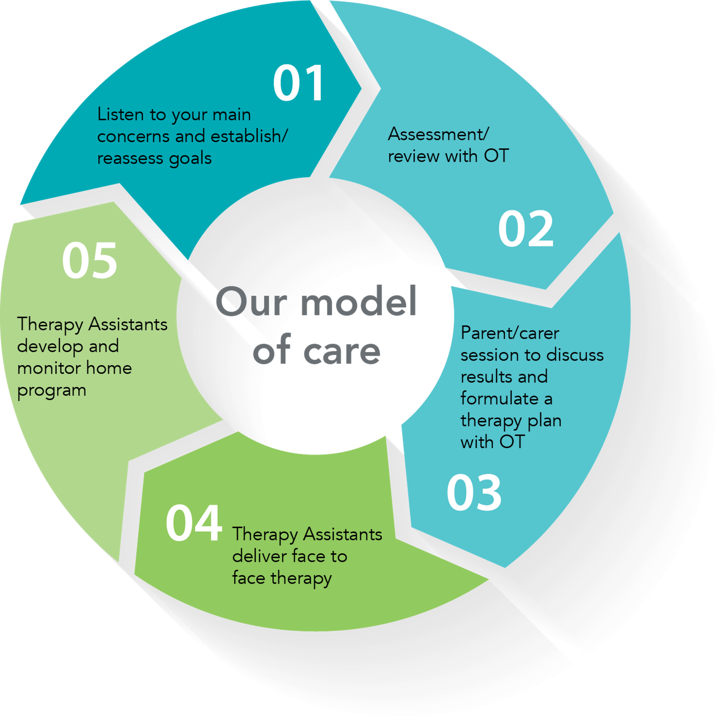 Your OT will complete an assessment to understand strengths, challenges and goals, then develop a practical plan to support progress.